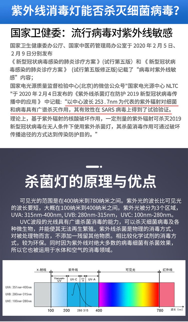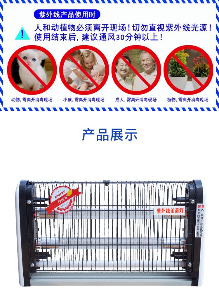 紫外线消毒灯悬挂家用杀菌灯诊所幼儿园食品厂医疗紫外线灯40W