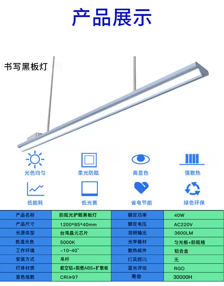 LED教室黑板灯高亮防眩光led教室灯护眼灯架节能无闪屏网格专用灯